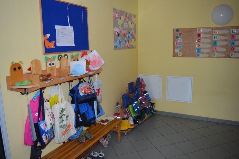 So haben wir eine Bibliothek, einen Bauraum, einen Bewegungsraum, einen Rollenspielraum, einen Kreativraum, eine Schreibwerkstatt und einen Spielflur.